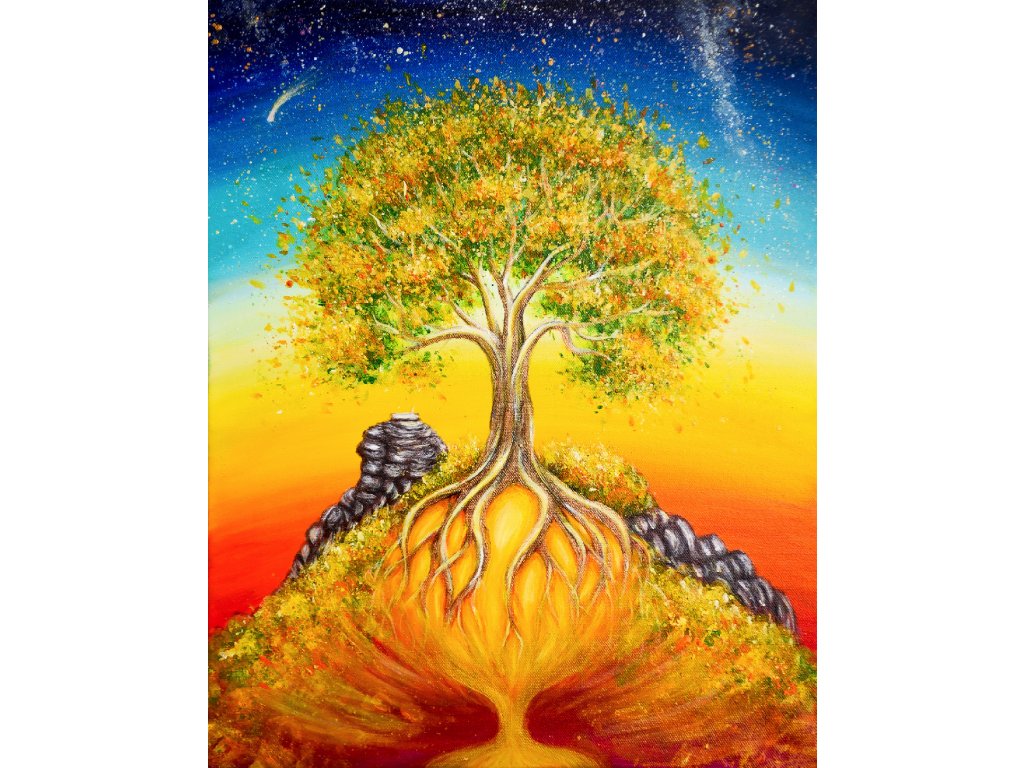 Fotoobraz se stromem života zříceniny hradu Kalich barevně rozzáří váš domov.