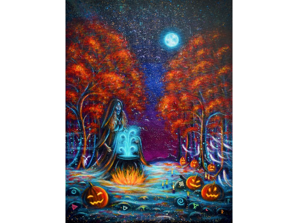 Tento nový obraz zasvěcuji keltskému svátku Samhain s úctou k podzimu a temnému období kola roku. Vznikal jeho energií a poslední týden jsem na něm pracovala od rána do pozdních nocí.