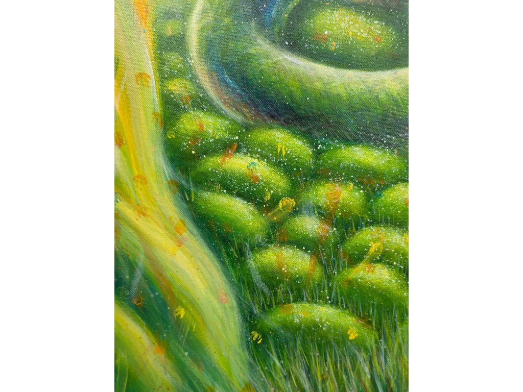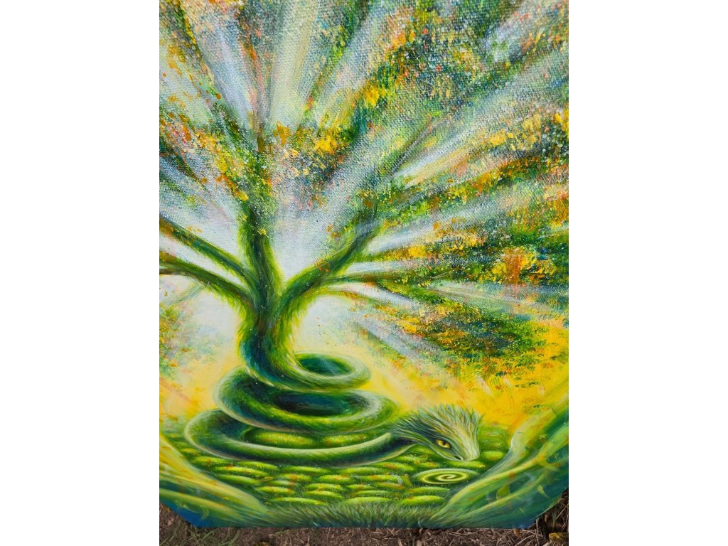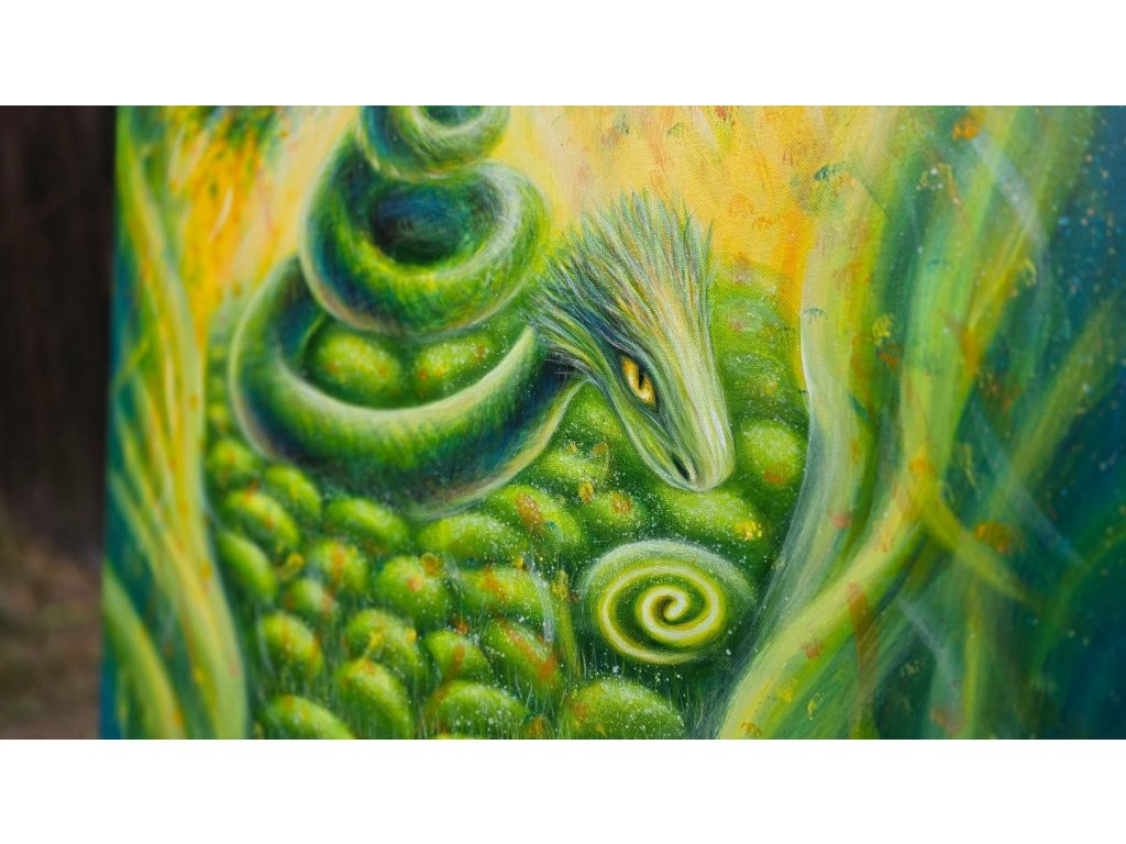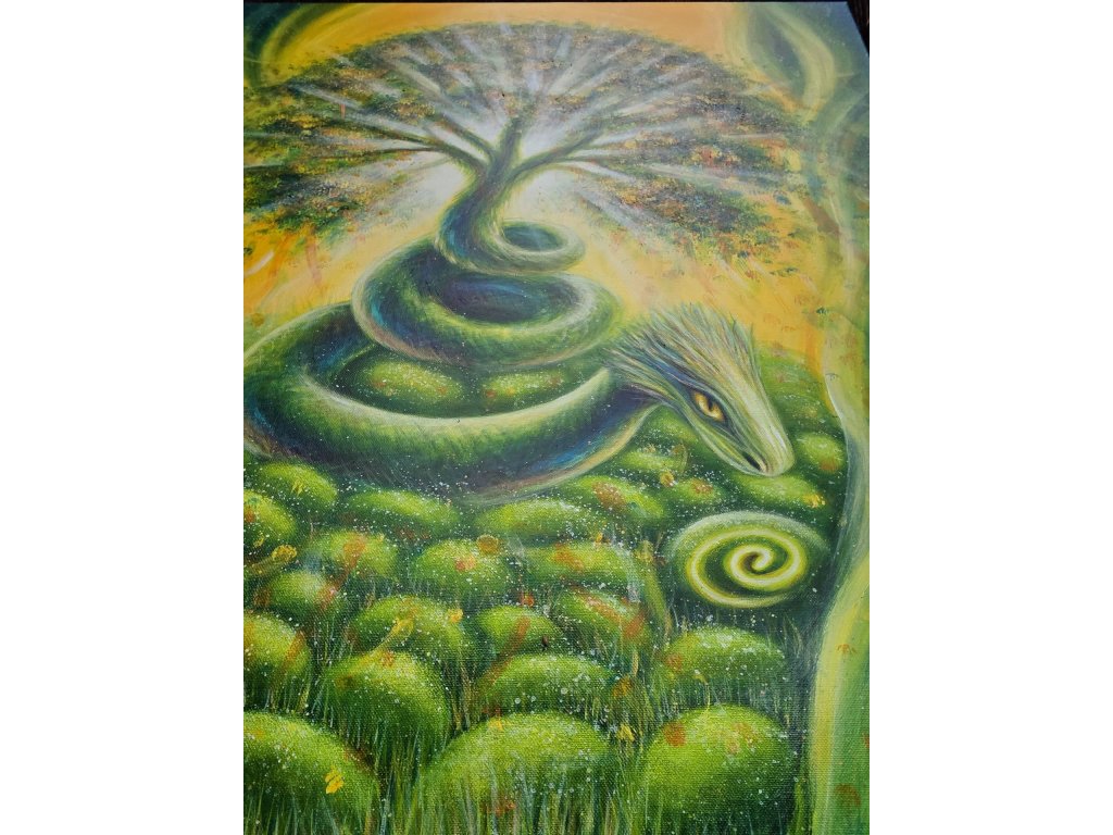 Tento obraz jsem malovala během roku hada, který přináší prosperitu. Své léčivé poselství však nepřináší jen pro tento rok, ale bude ho dávat napořád.