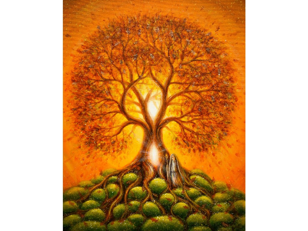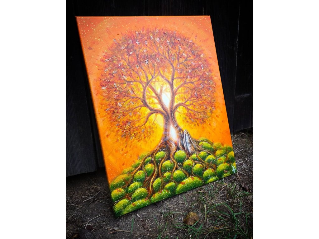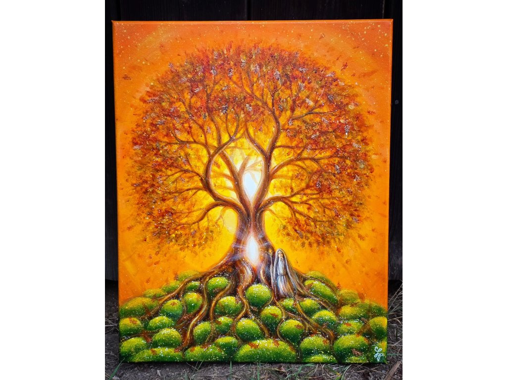 Ručně malovaný obraz stromu života s keltským druidem "Hradiště u Hlinné" 40x50 cm- Louise Art