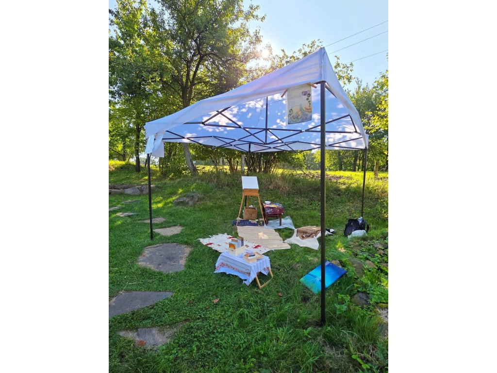Tvořím vždy s voláním a svolením daného místa. Tyto obrazy vznikají za jakýchkoli podmínek v přírodě a většinou na vrcholcích kopců středohoří, dle možností. Dle přístupnosti, domluvou s CHKO, obcí, pozemky a vždy tak činím s respektem a úctou k přírodě. S sebou si beru veškeré malířské vybavení, plátno, stojan, potřebné věci a stánek v případě deště, ale i některé menší dárkové tisky.
