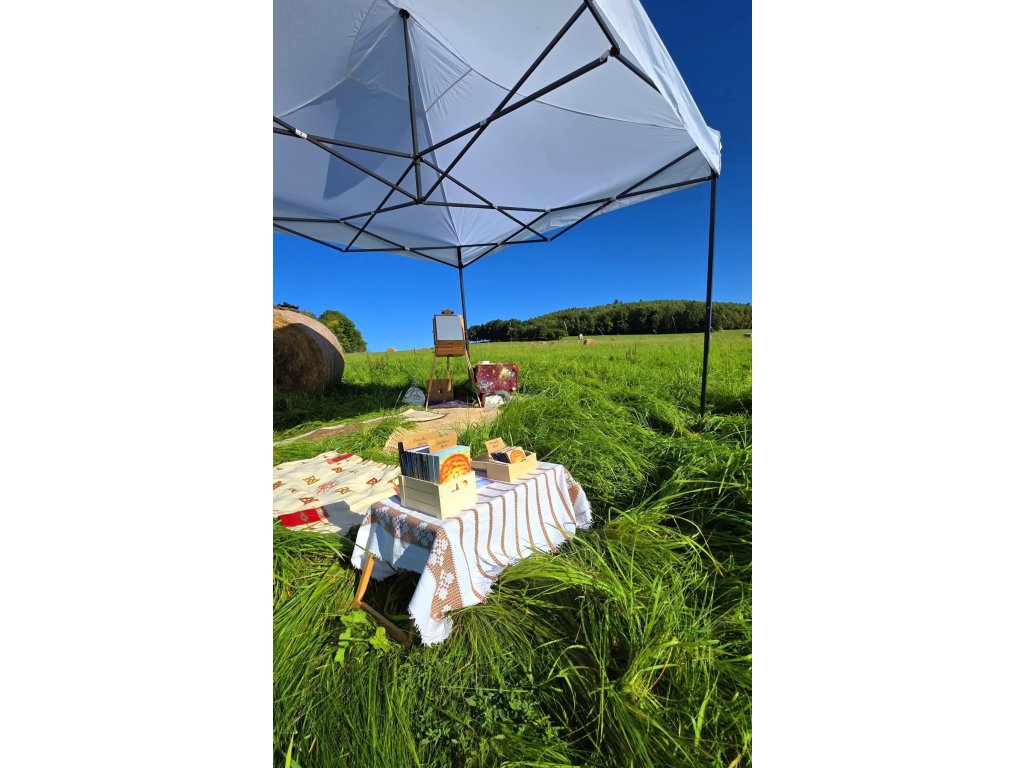 Tvořím vždy s voláním a svolením daného místa. Tyto obrazy vznikají za jakýchkoli podmínek v přírodě a většinou na vrcholcích kopců středohoří, dle možností. Dle přístupnosti, domluvou s CHKO, obcí, pozemky a vždy tak činím s respektem a úctou k přírodě. S sebou si beru veškeré malířské vybavení, plátno, stojan, potřebné věci a stánek v případě deště, ale i některé menší dárkové tisky.